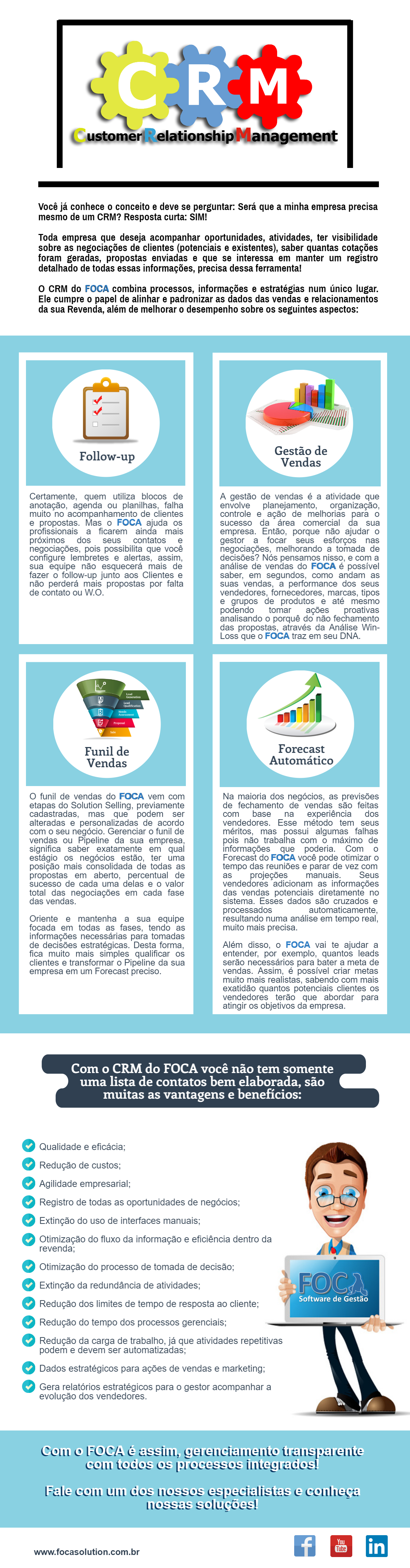 O CRM do FOCA combina processos, informações e estratégias num único lugar! Confira mais um infográfico exclusivo.